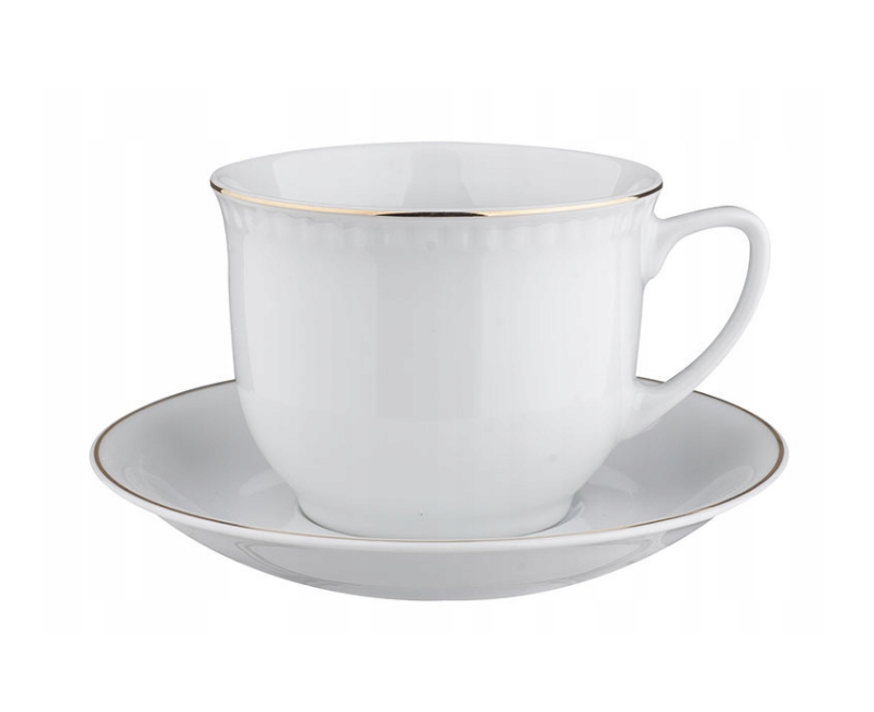 Filiżanka Wiedeń 300ml ze spodkiem, wykończona linią złota, marki Lubiana